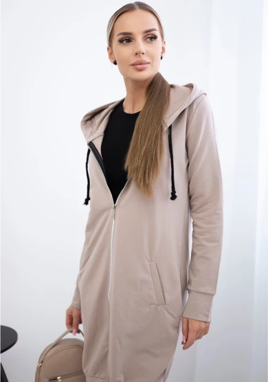 Narzutka długa z kapturem Camelowa