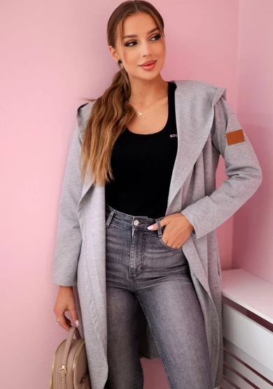 Narzutka długa z kapturem Szara