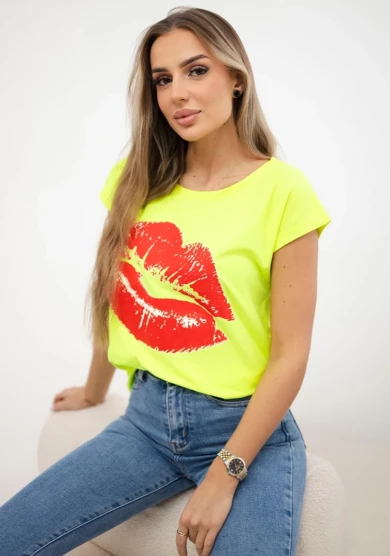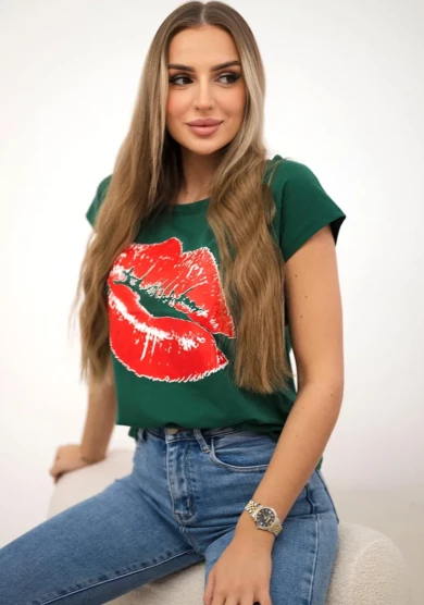 Bluzka z nadrukiem ust Zielona