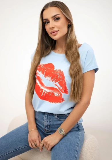 Bluzka z nadrukiem ust Niebieska
