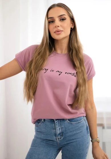 Bluzka z nadrukiem ust Jasny Różowy