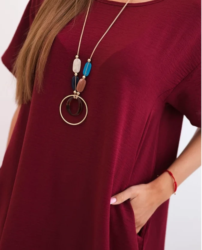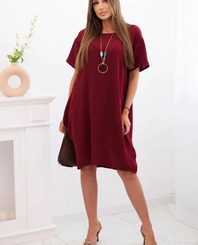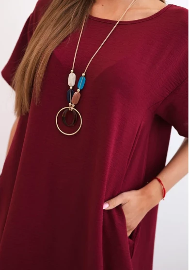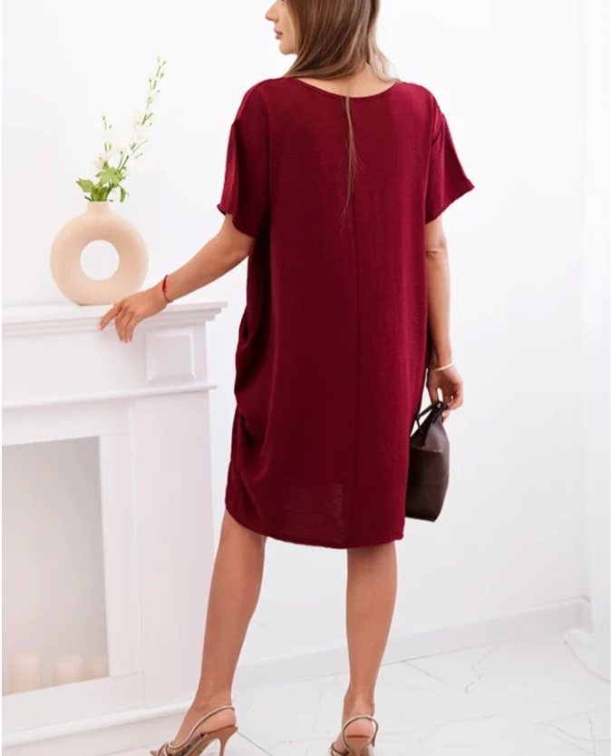 Sukienka z kieszeniami – ciemno bordowa