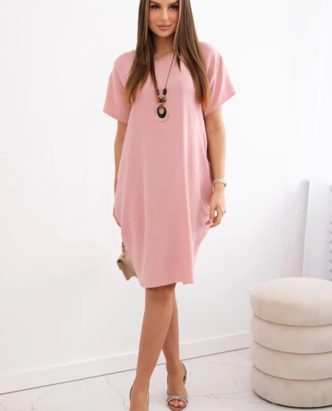 Sukienka z kieszeniami – ciemny pudrowy róż