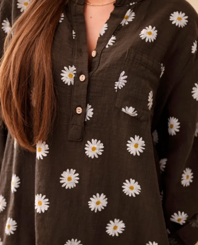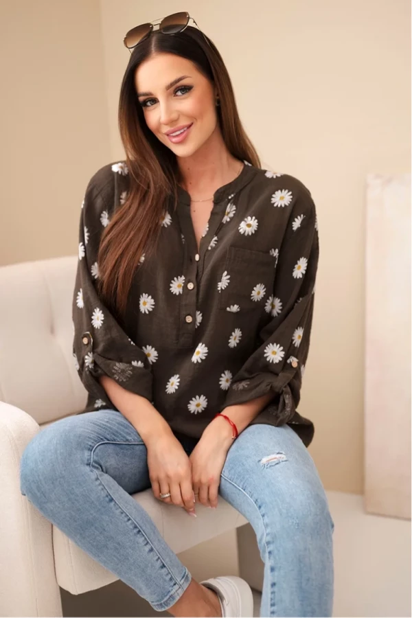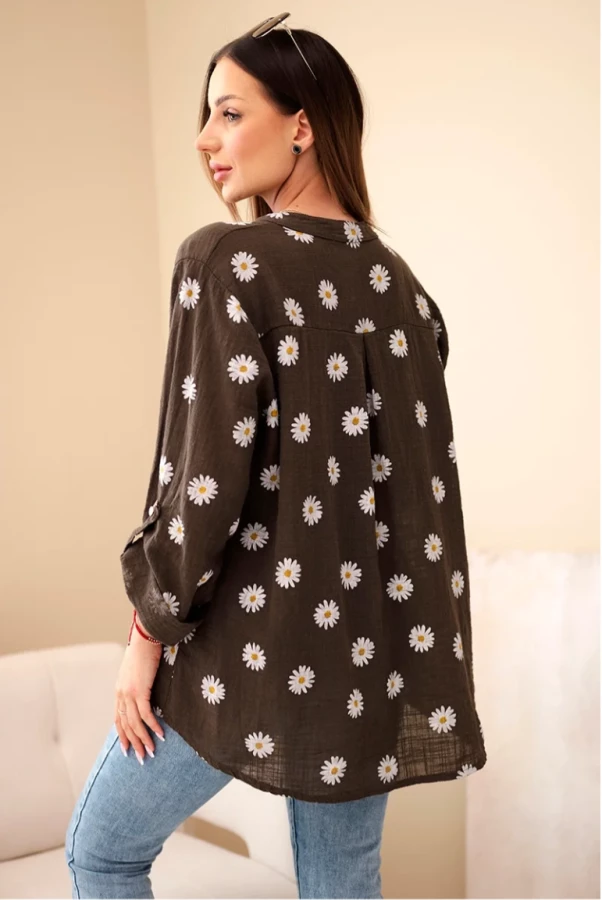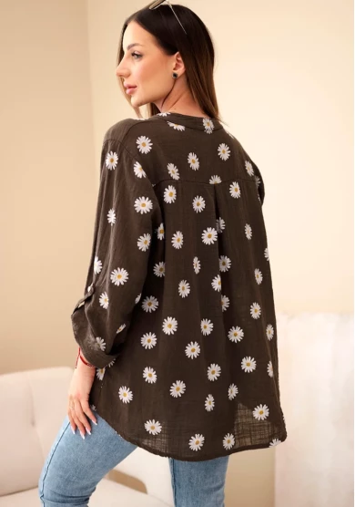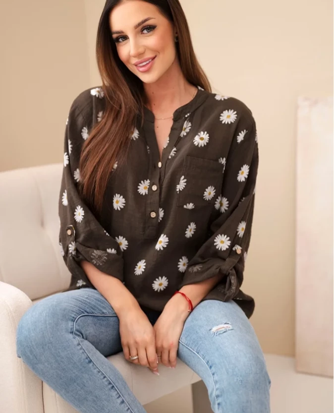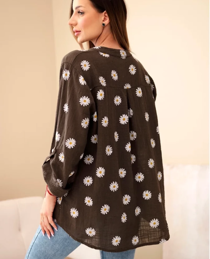 Bluzka koszulowa w stokrotki – brązowa