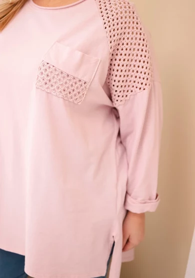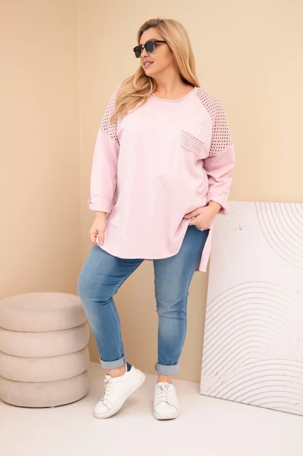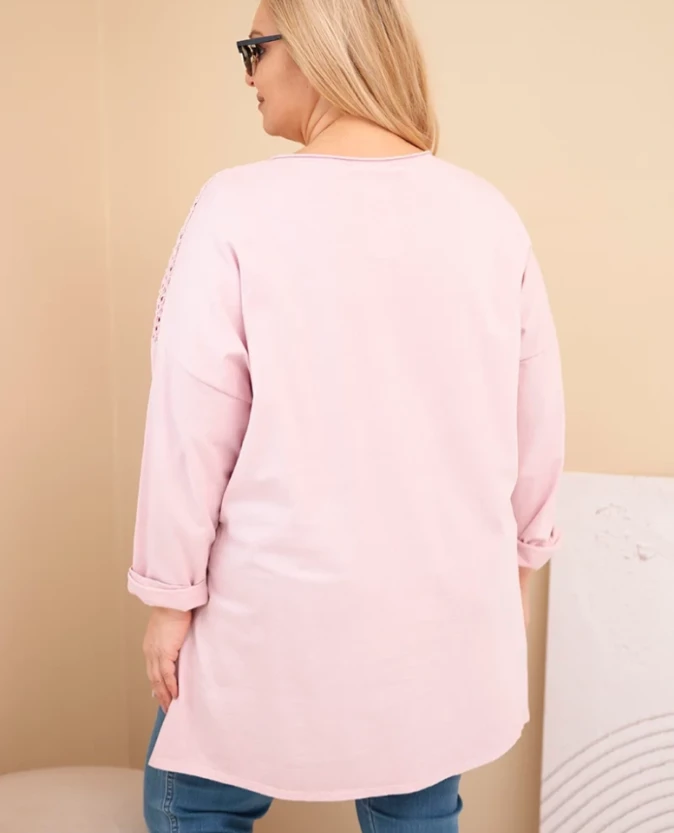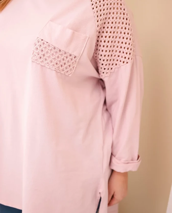 Elegancka bluza damska w kolorze Ciemny Pudrowy Róż o oversize’owym kroju, wykonana z miękkiej i elastycznej bawełny, zapewnia wygodę i swobodę ruchów. Asymetryczna długość, przedłużony tył i regulowane rękawy nadają bluzie modnego i nowoczesnego charakteru, pasującego do codziennych stylizacji.