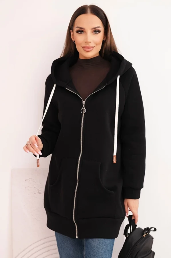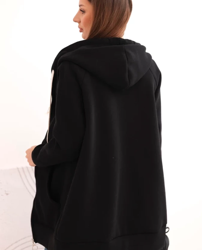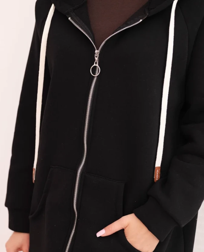 Bluza damska ocieplana bluza z kapturem i zamkiem Czarna
