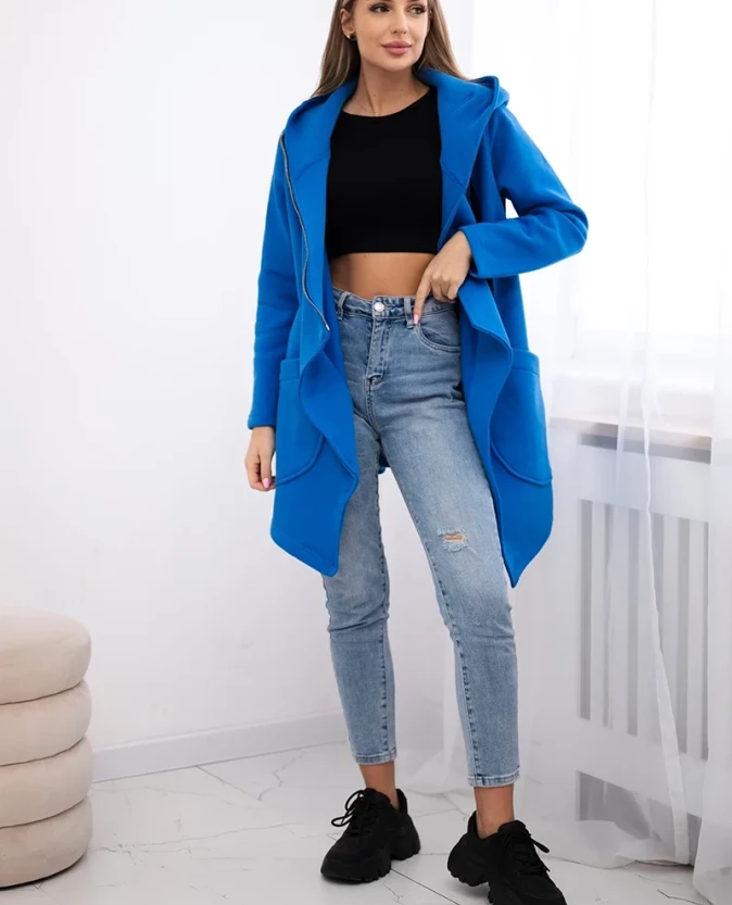 Chabrowa bluza z kapturem i asymetrycznym suwakiem – wygoda i styl w nowoczesnym wydaniu
