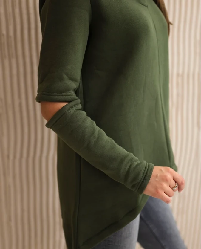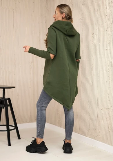 Khaki bluza z kapturem i dłuższym tyłem – naturalny szyk i wygoda