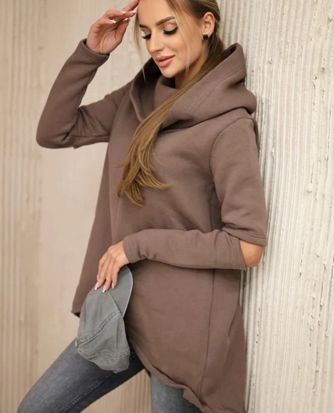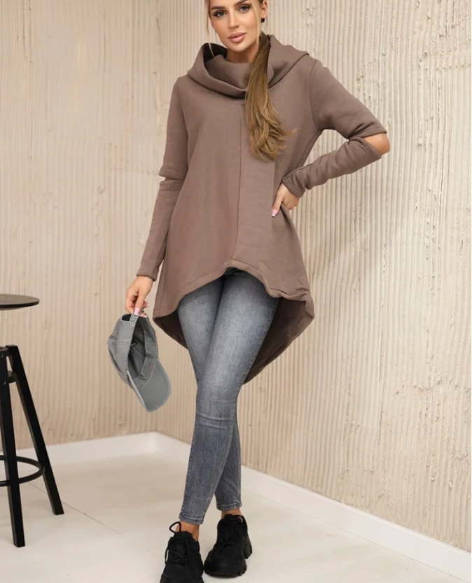 Bluza z długim tyłem i kapturem Mocca