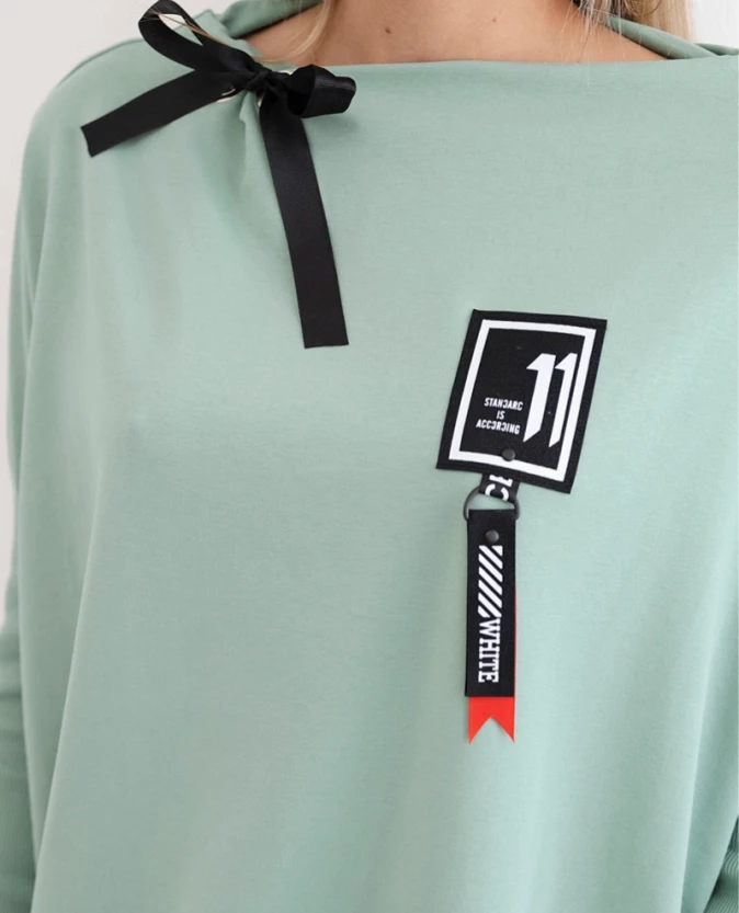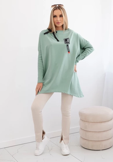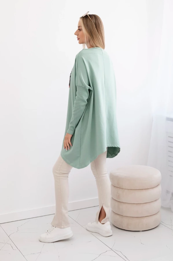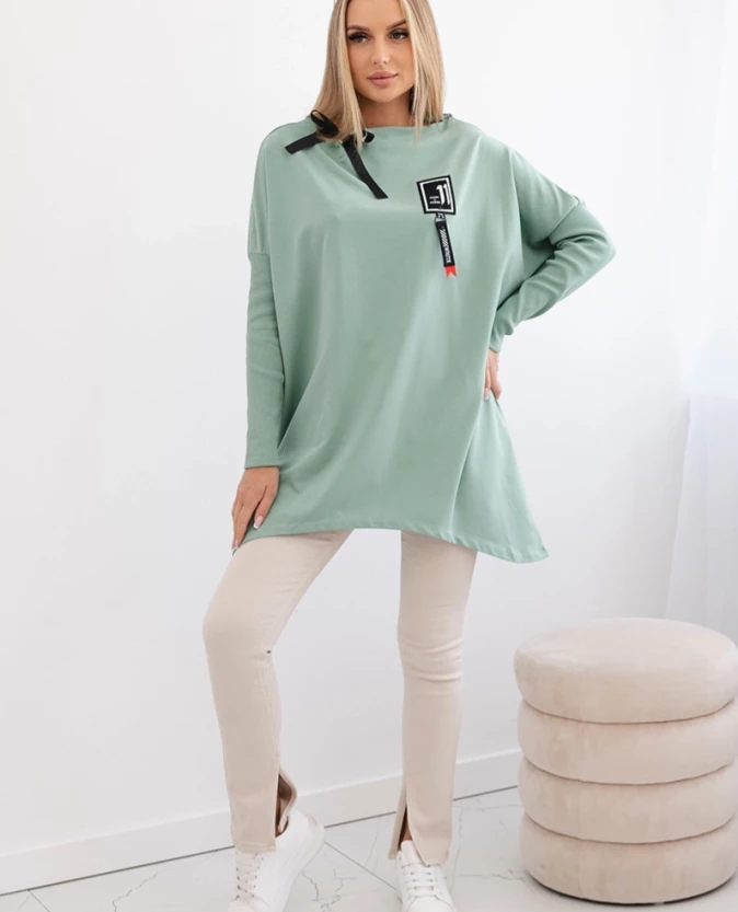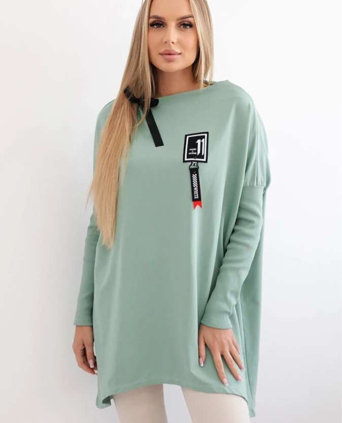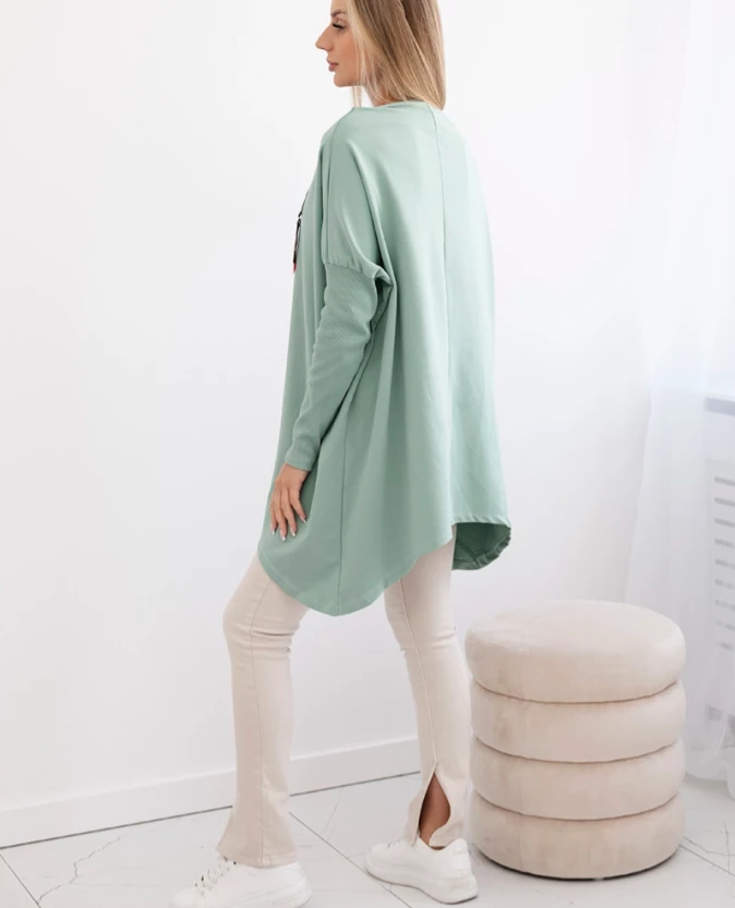 Bluza oversize z asymetrycznymi bokami Ciemny Miętowy