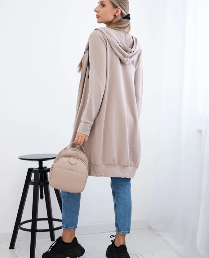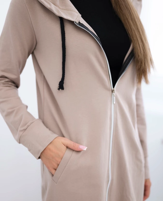 Prezentujemy wygodną długą bluzę z kapturem. Bluza posiada zapięcie na suwak, wykonana jest z wysokiej jakości materiału. Rozmiar jest uniwersalny i będzie odpowiedni dla Pań noszących rozmiar S, M lub L.