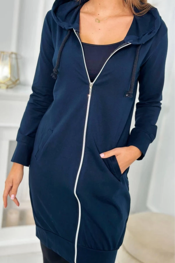 Prezentujemy wygodną długą bluzę z kapturem. Bluza posiada zapięcie na suwak, wykonana jest z wysokiej jakości materiału. Rozmiar jest uniwersalny i będzie odpowiedni dla Pań noszących rozmiar S, M lub L.