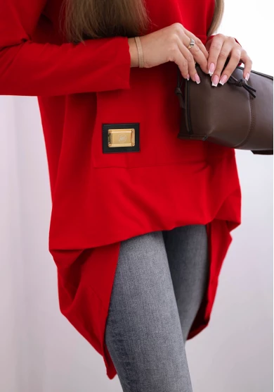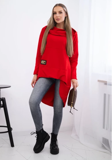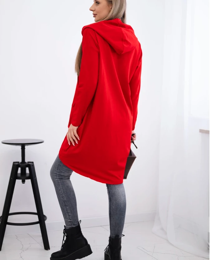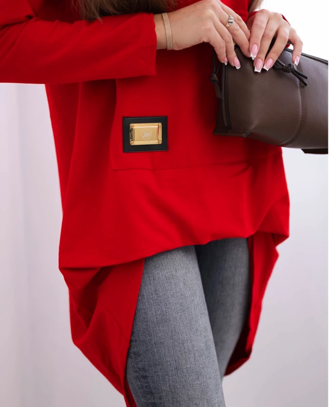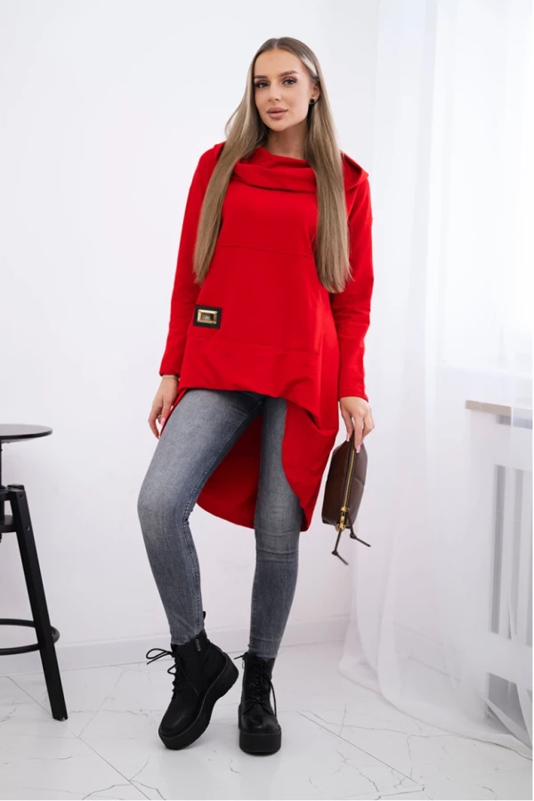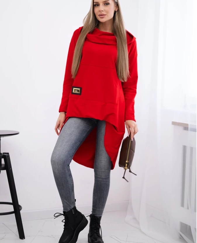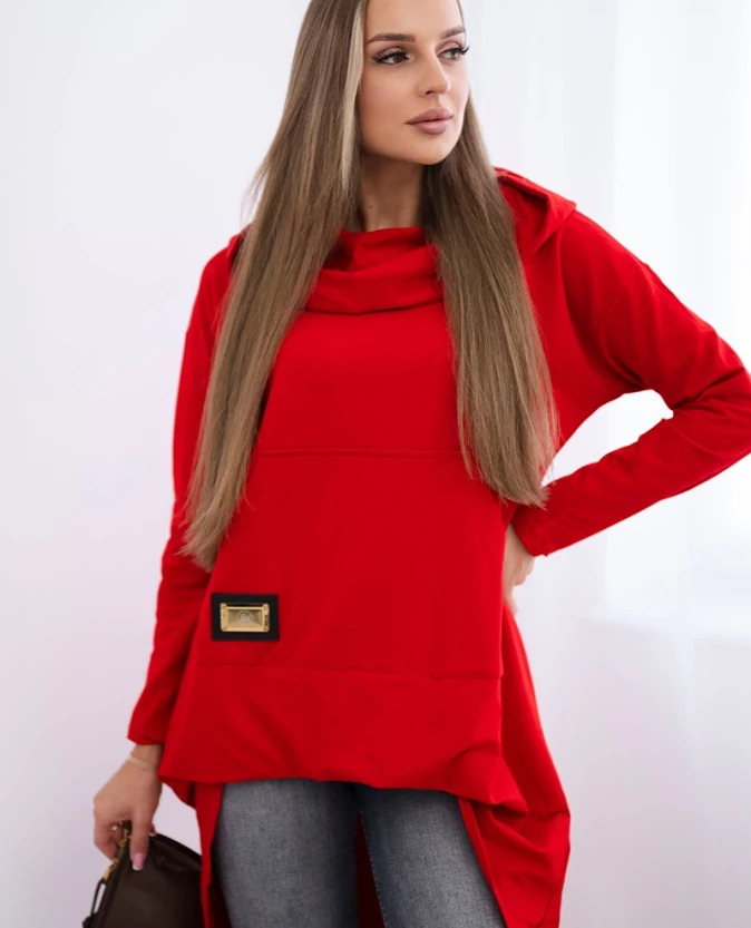 Czerwona bluza z długim tyłem i kapturem – nowoczesna forma i wygoda