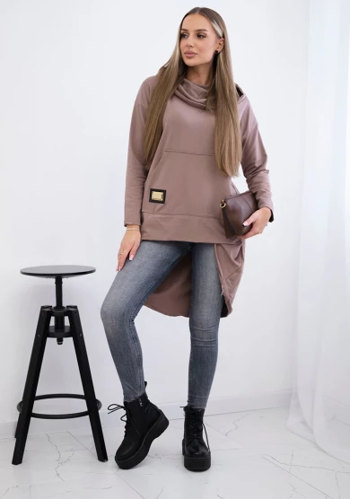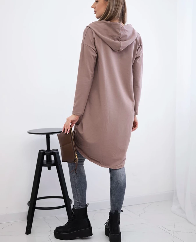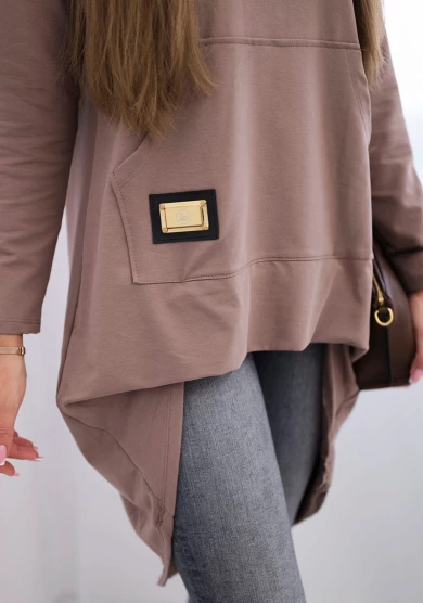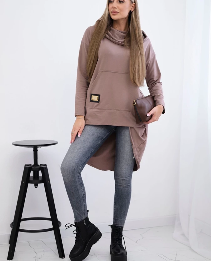 Bluza w kolorze mocca z długim tyłem i kapturem – ciepło i elegancja w codziennym wydaniu