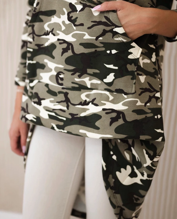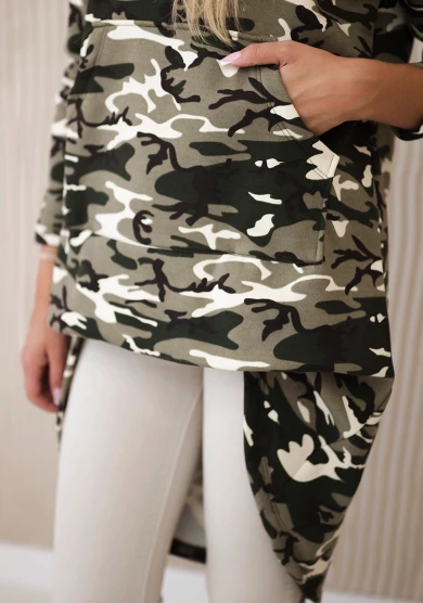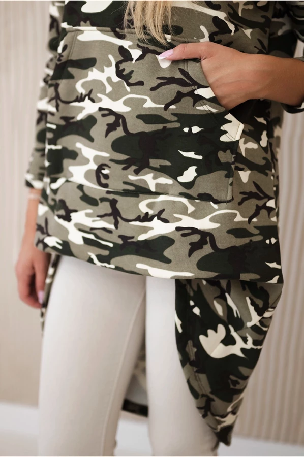 Bluza z długim tyłem moro Khaki /Ecru
