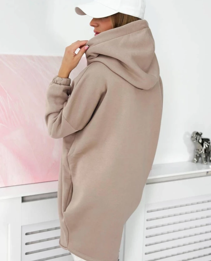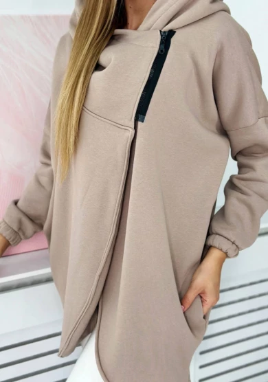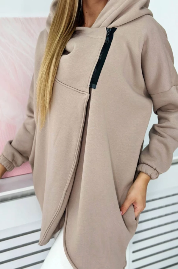 Bluza z kapturem i suwakiem – Ciemny Beż