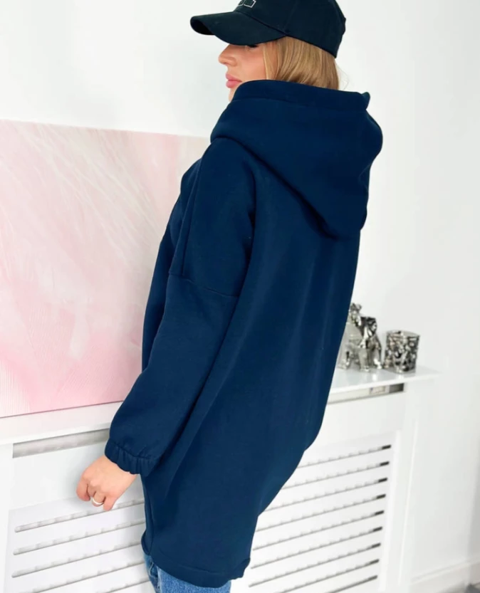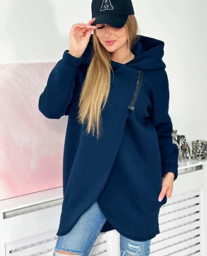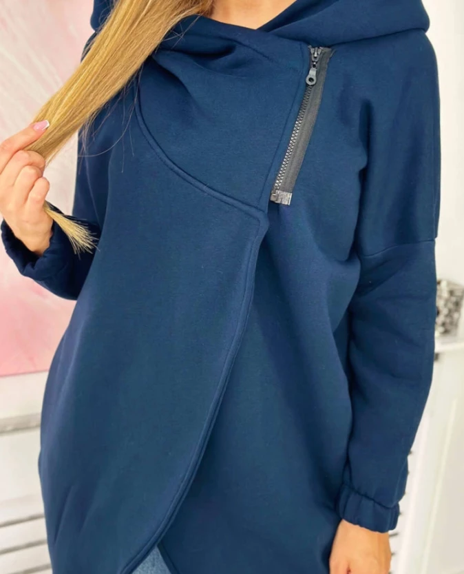 Granatowa bluza to ponadczasowa klasyka w nowoczesnym wydaniu. Głęboki kolor dodaje stylizacji elegancji, a sportowy krój zapewnia maksymalny komfort. Kaptur chroni przed chłodem, suwak umożliwia wygodne zakładanie, a kieszenie podkreślają praktyczny charakter modelu. Wysokogatunkowy materiał z dodatkiem elastanu sprawia, że bluza doskonale dopasowuje się do sylwetki.