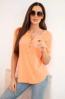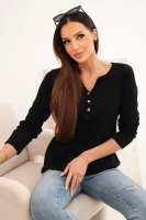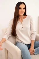 Bluzka damska z długim rękawem i dekoltem na guziki - Jasno Różowa