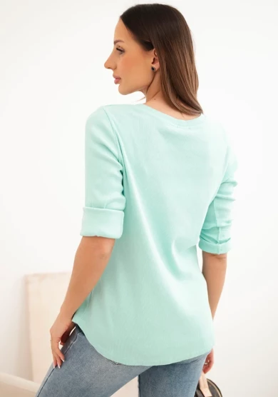 Bluzka damska z długim rękawem i dekoltem na guziki - Miętowa