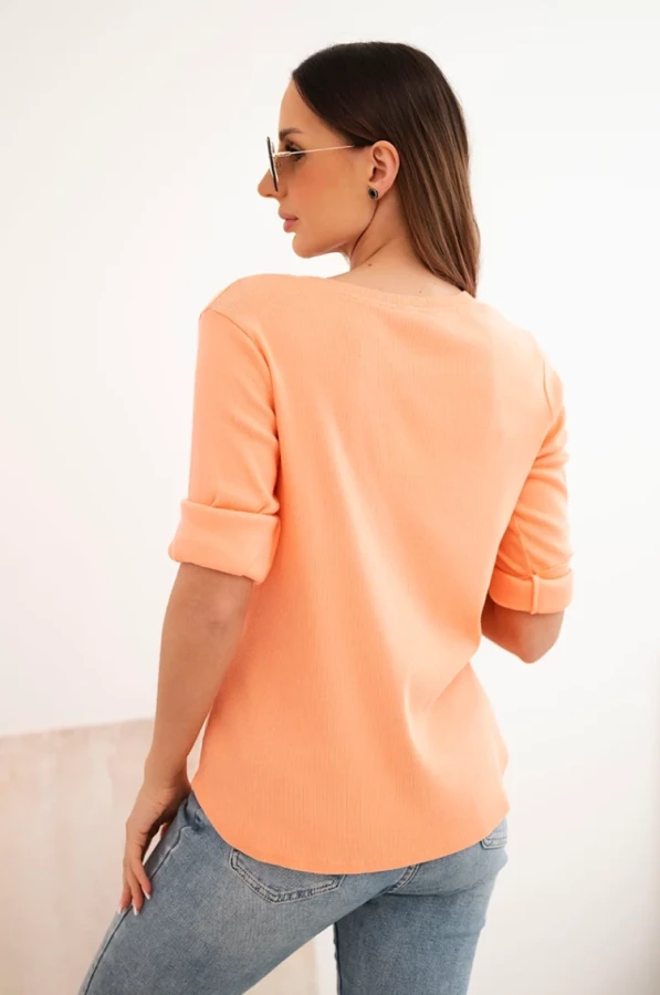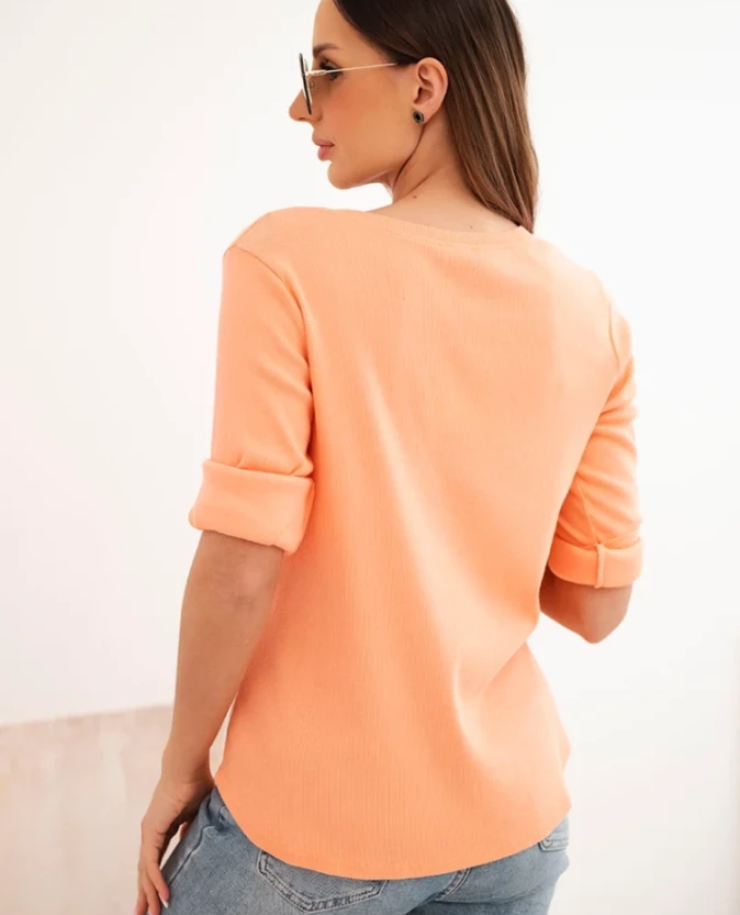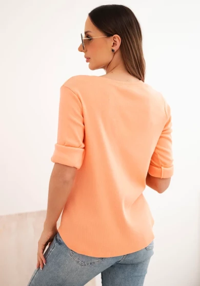 Bluzka damska z długim rękawem i dekoltem na guziki - Morelowa