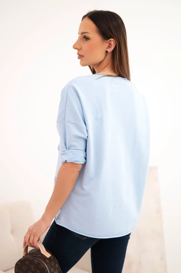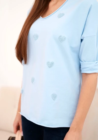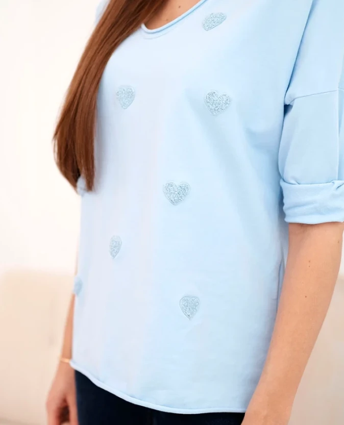 Bluzka z haftowanymi serduszkami - Niebieska