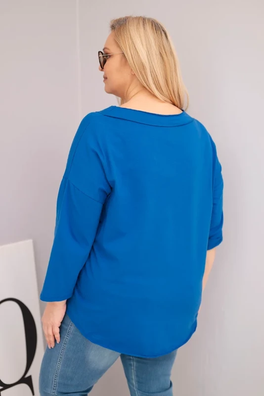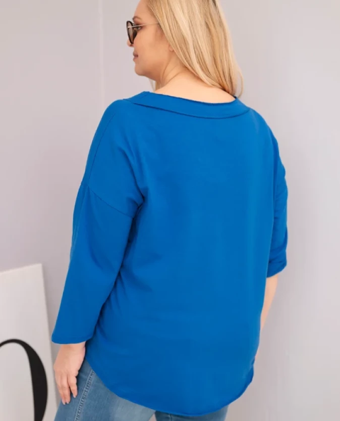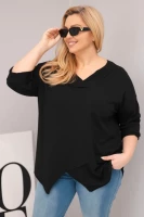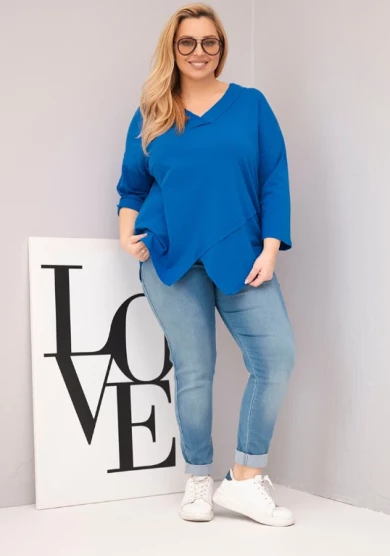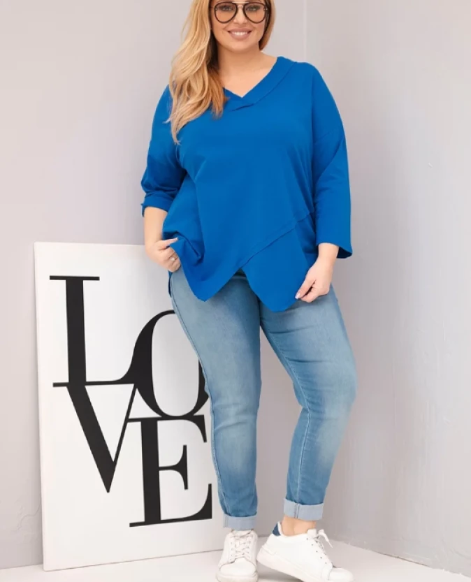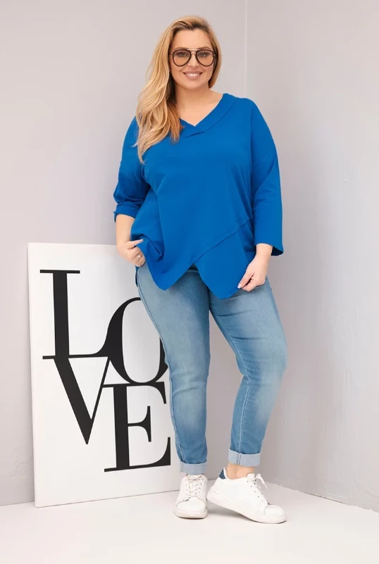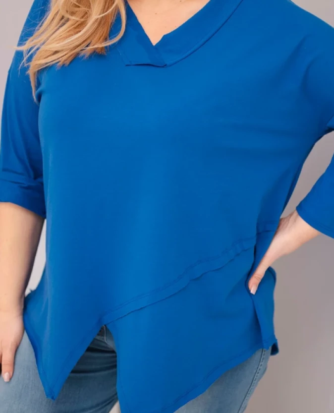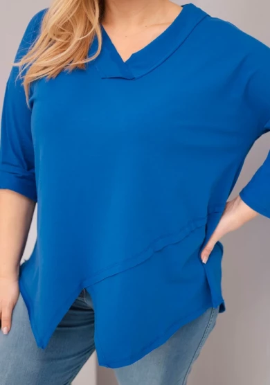 Bluzka damska bawełniana z głębokim dekoltem V i asymetrycznym dołem Chabrowa