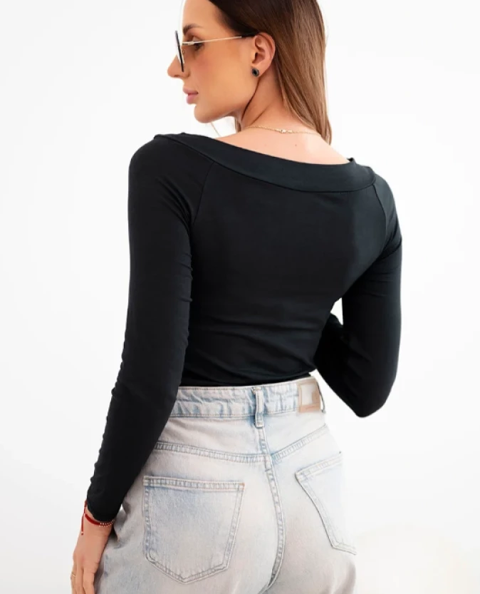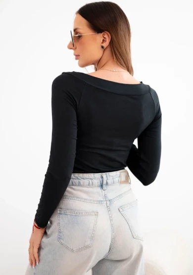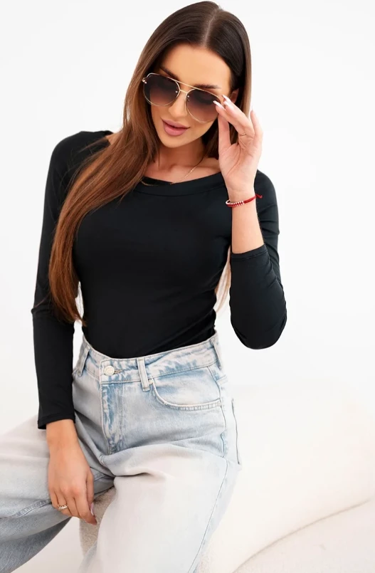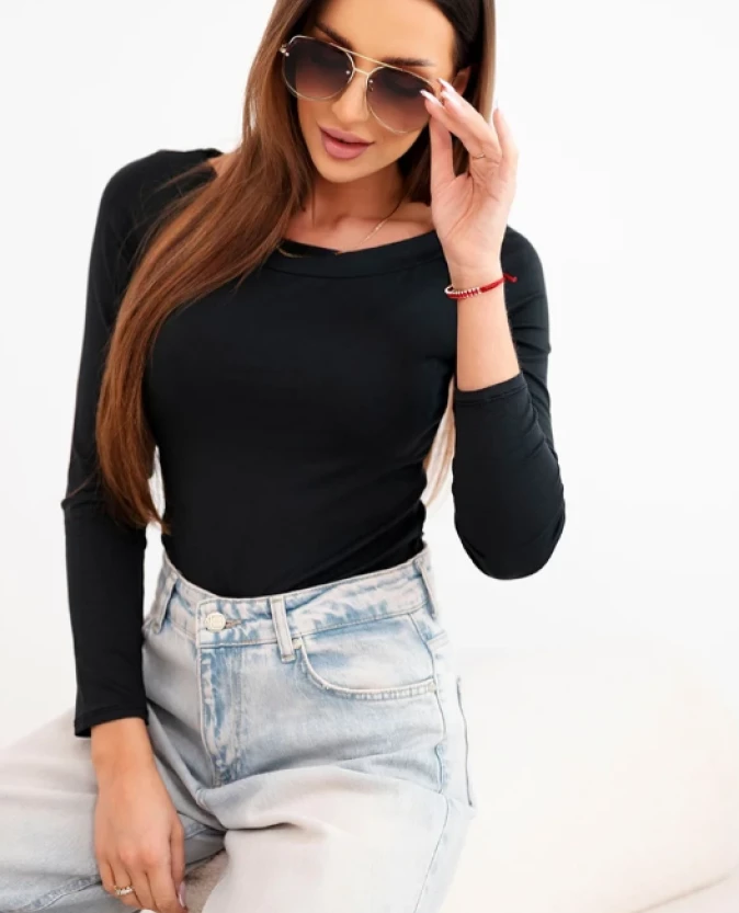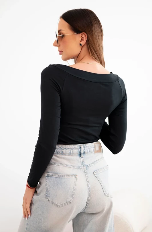 Bluzka damska wiskozowa z szerokim dekoltem i długim rękawem Czarna