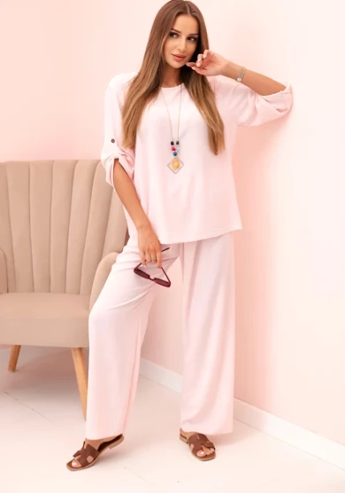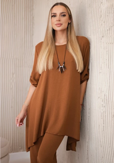 Komplet bluzka i spodnie Ciemny Camelowy