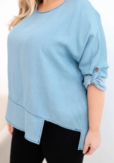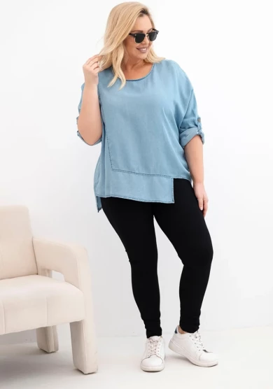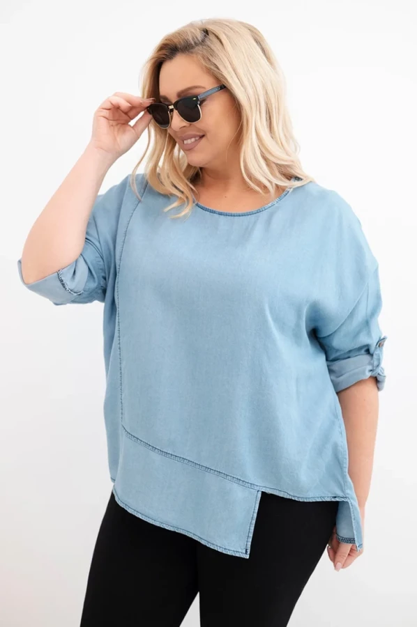 Bluzka damska z lyocellu z asymetrycznym dołem Jasno Jeansowa
