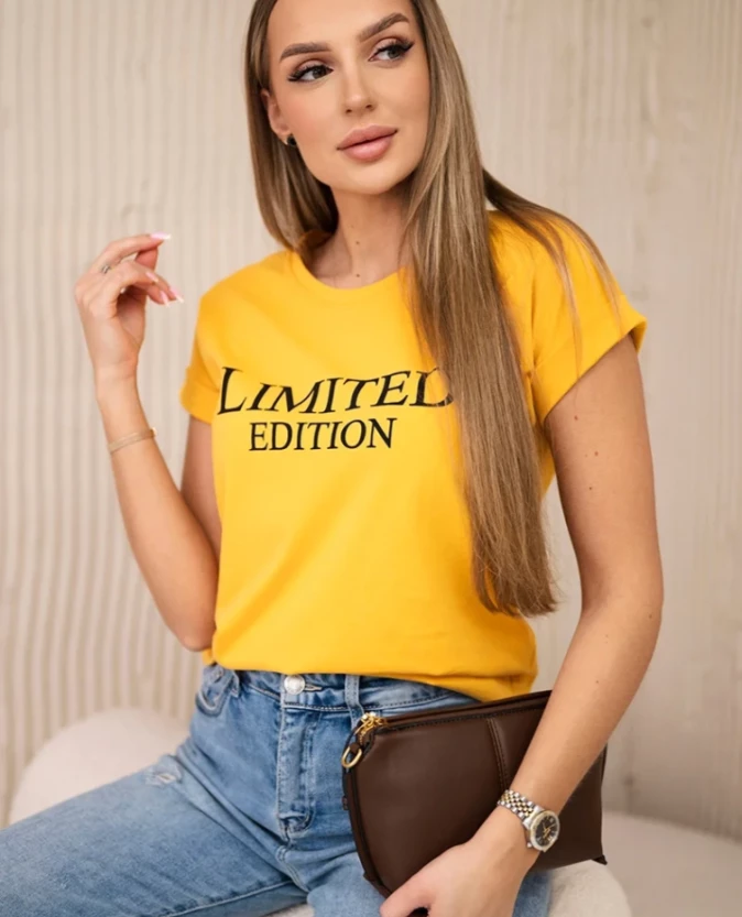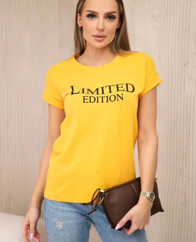 Bluzka damska z nadrukiem Limited Edition – musztardowa