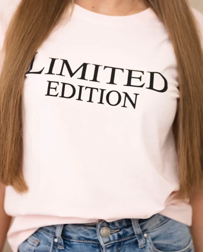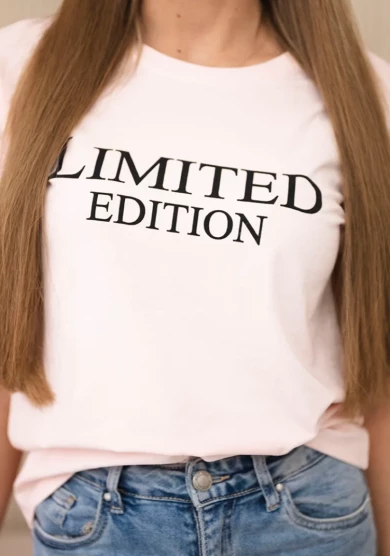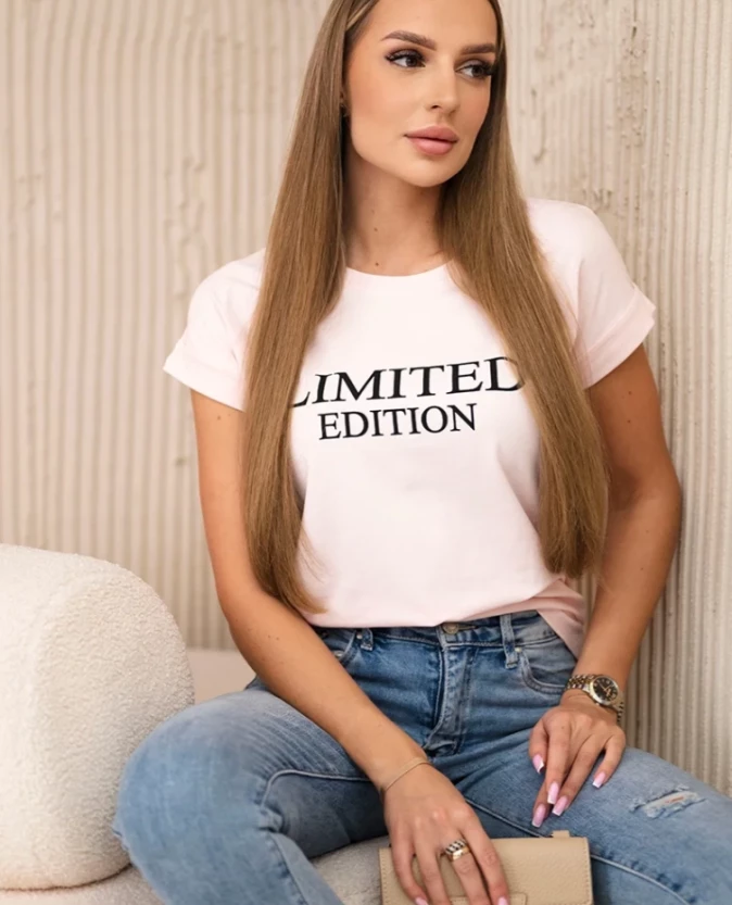 Elegancka i jednocześnie wygodna bluzka damska z nadrukiem „Limited Edition” w modnym połączeniu kolorów czerni i pudrowego różu. Kontrastowe zestawienie barw nadaje bluzce wyjątkowego charakteru i sprawia, że świetnie prezentuje się w wielu stylizacjach.