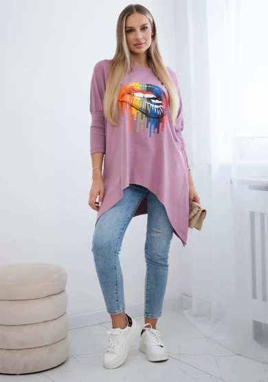 Bluzka oversize z nadrukiem ust – ciemny różowy