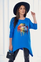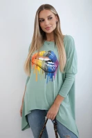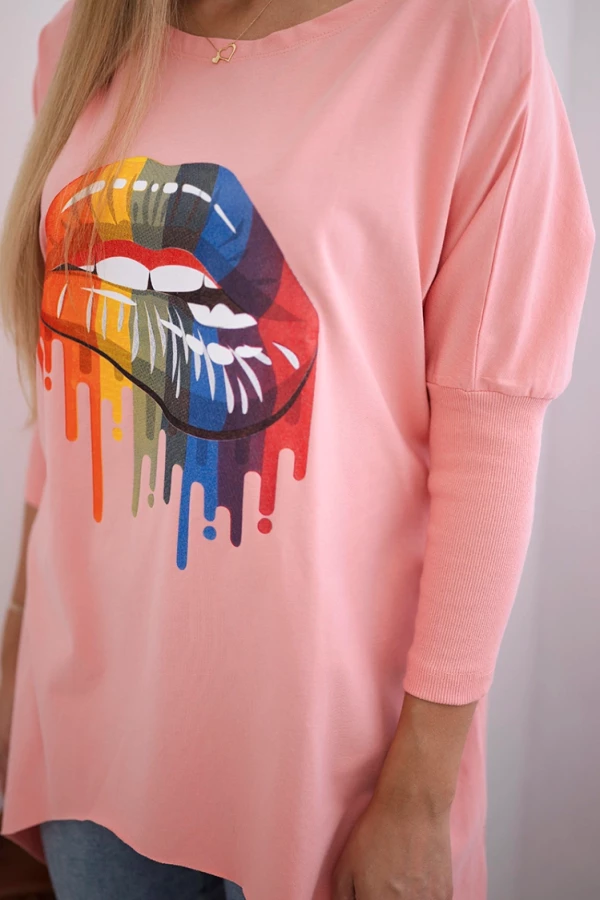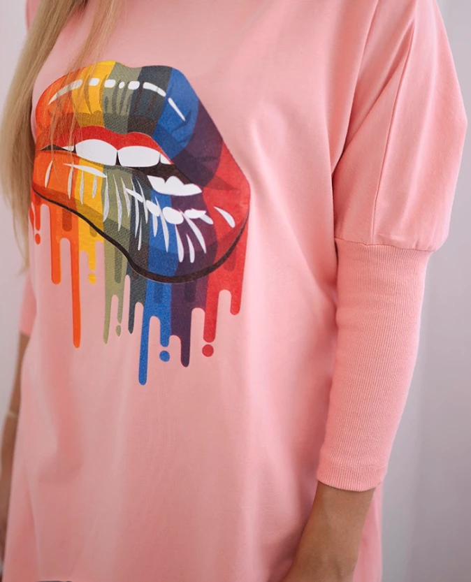 Bluzka oversize z nadrukiem tęczowych ust Morelowa