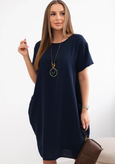 Ażurowa sukienka z kieszeniami Granatowa