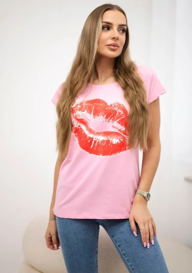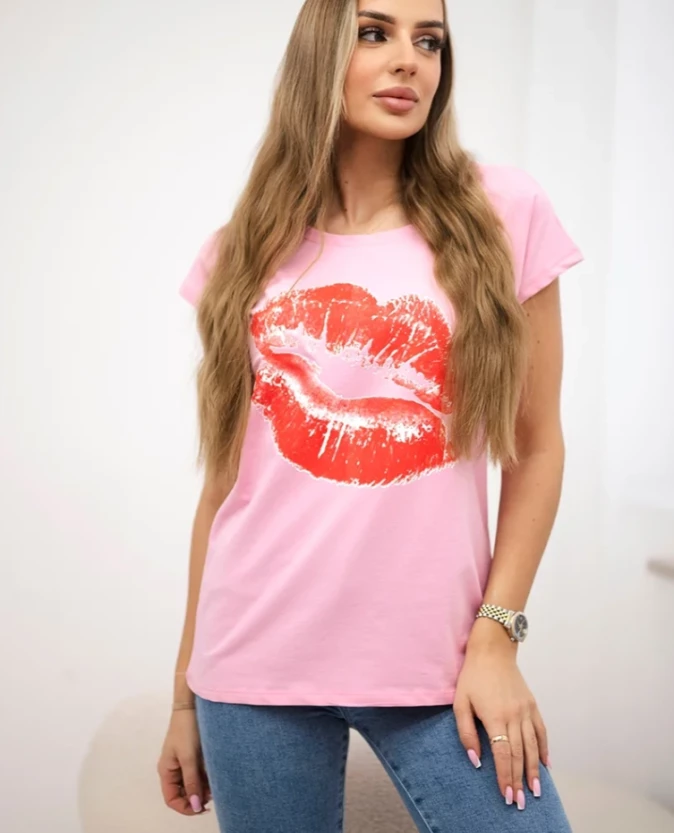 Bluzka damska z nadrukiem ust – jasny różowy