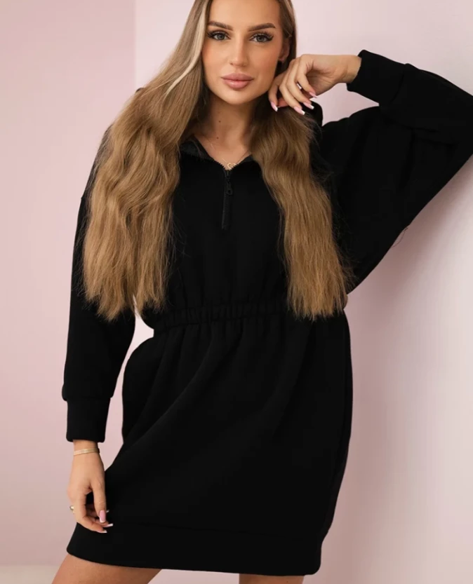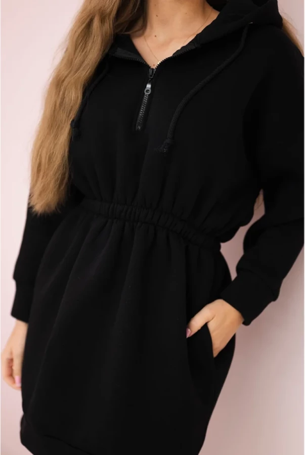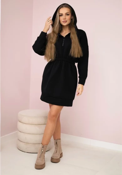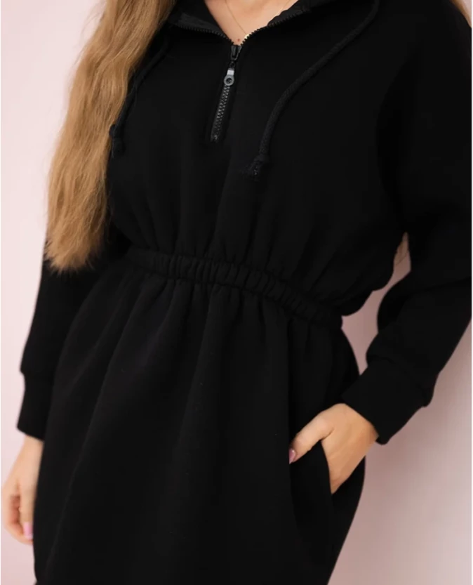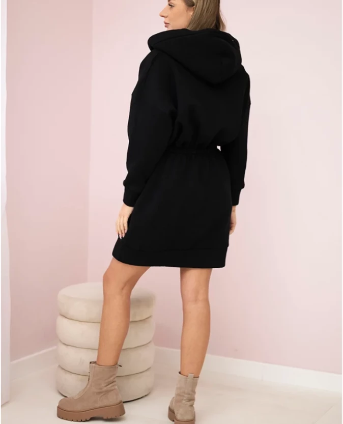 Bluzosukienka ocieplana z kapturem Czarna