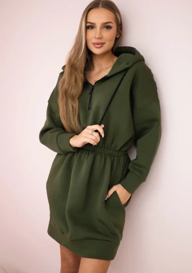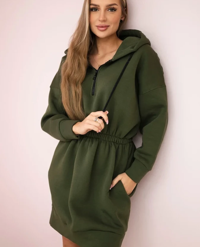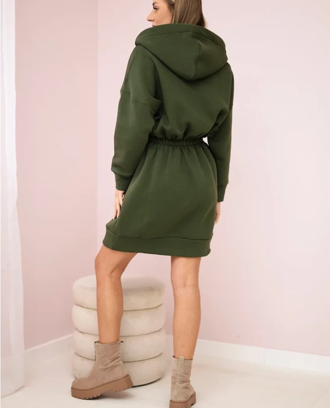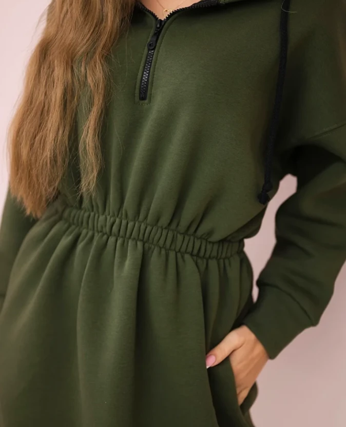 Bluzosukienka ocieplana z kapturem Khaki