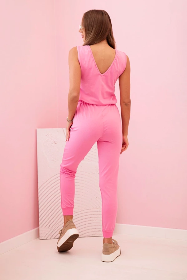 Kombinezon damski bawełniany bez rękawów z wiązaniem w talii Jasny Różowy