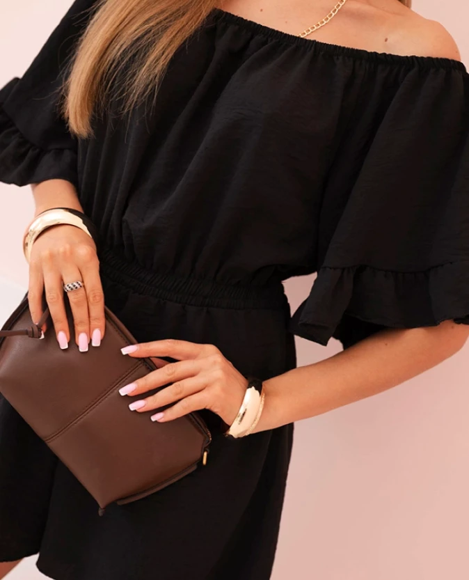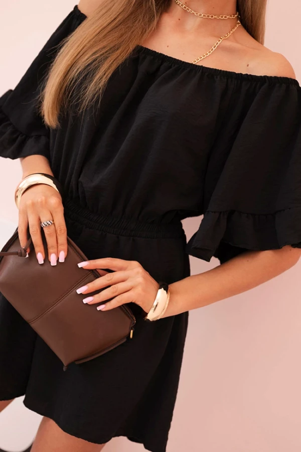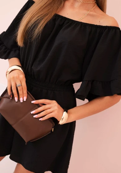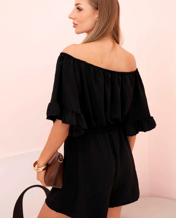 Kombinezon damski hiszpanka z falbankami i gumką w talii Czarny