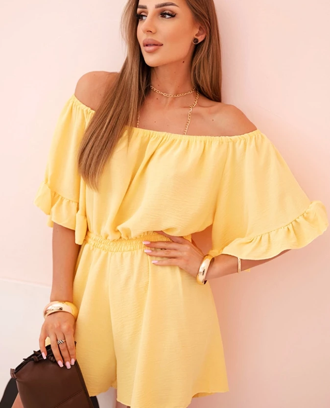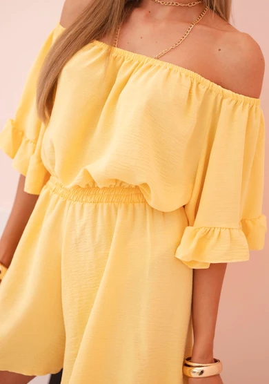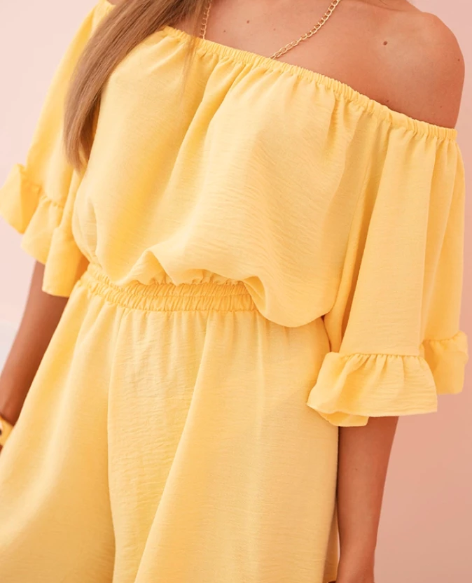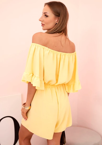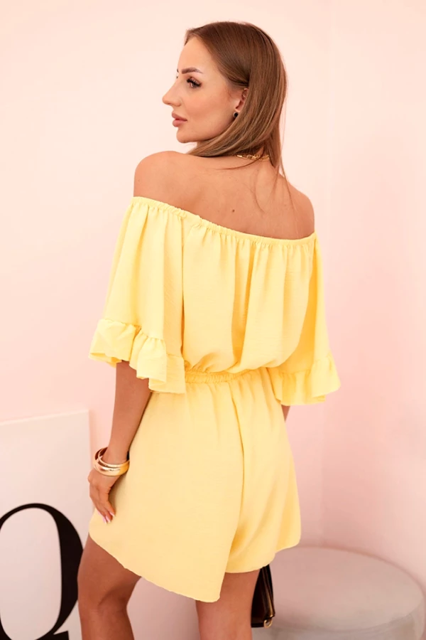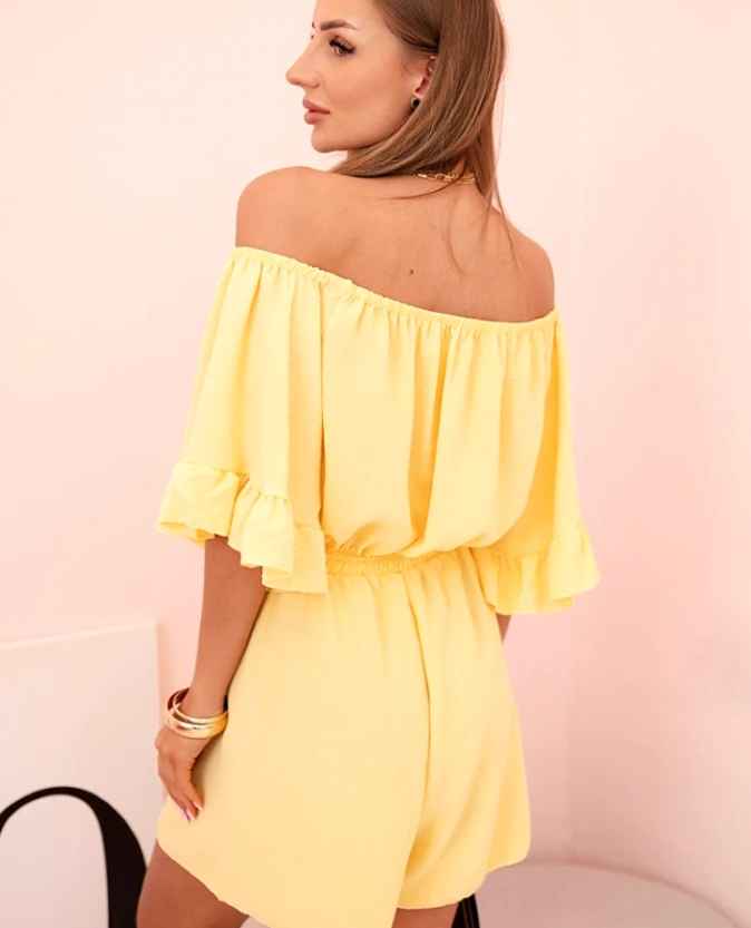 Kombinezon damski hiszpanka z falbankami i gumką w talii Żółty