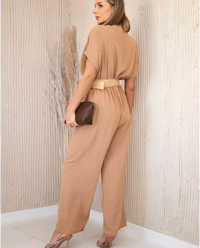 Kombinezon damski z paskiem – camelowy