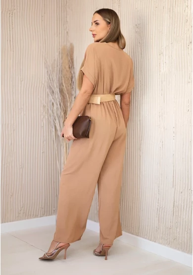 Kombinezon z ozdobnym paskiem w talii Camelowy