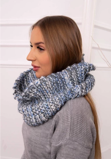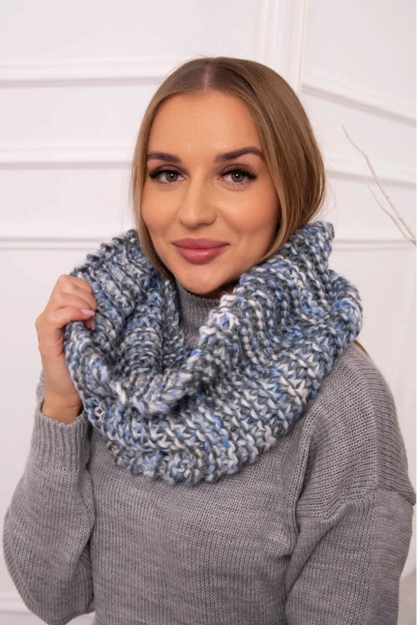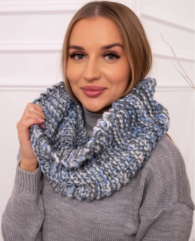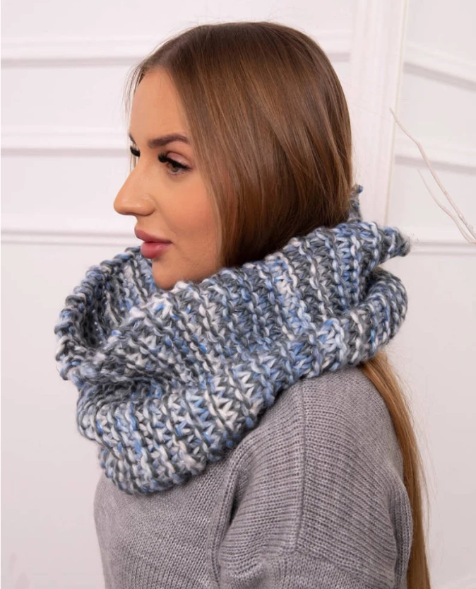 Komin w zestawieniu niebieskiego z grafitem to modny akcent, który ożywi jesienno-zimowe stylizacje. Ciepły, przyjemny w dotyku materiał zapewnia komfort nawet w chłodniejsze dni, a staranne wykończenie podkreśla jego wysoką jakość. Doskonale prezentuje się w komplecie z dopasowaną czapką.