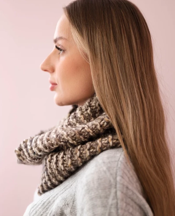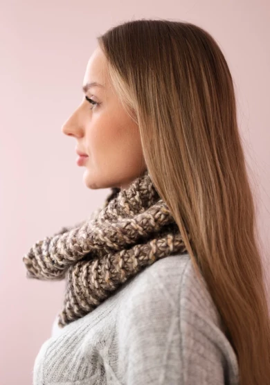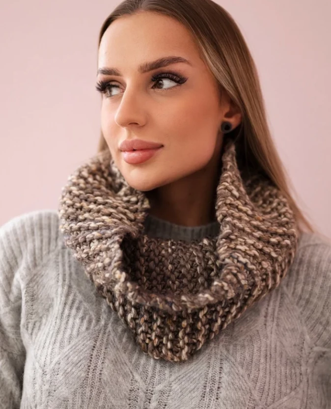 Komin w odcieniu mocca to stylowy i praktyczny dodatek, który doskonale uzupełni jesienne oraz zimowe stylizacje. Miękki, ciepły materiał zapewnia komfort noszenia, a staranne wykonanie gwarantuje trwałość na wiele sezonów. Idealnie komponuje się z czapką, tworząc spójny i elegancki zestaw.