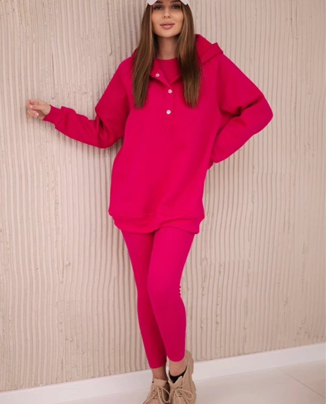 Komplet 3 w 1 bluza, top i legginsy w kolorze Fuksja