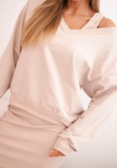 Komplet bluzka plus sukienka prążkowana Beżowy