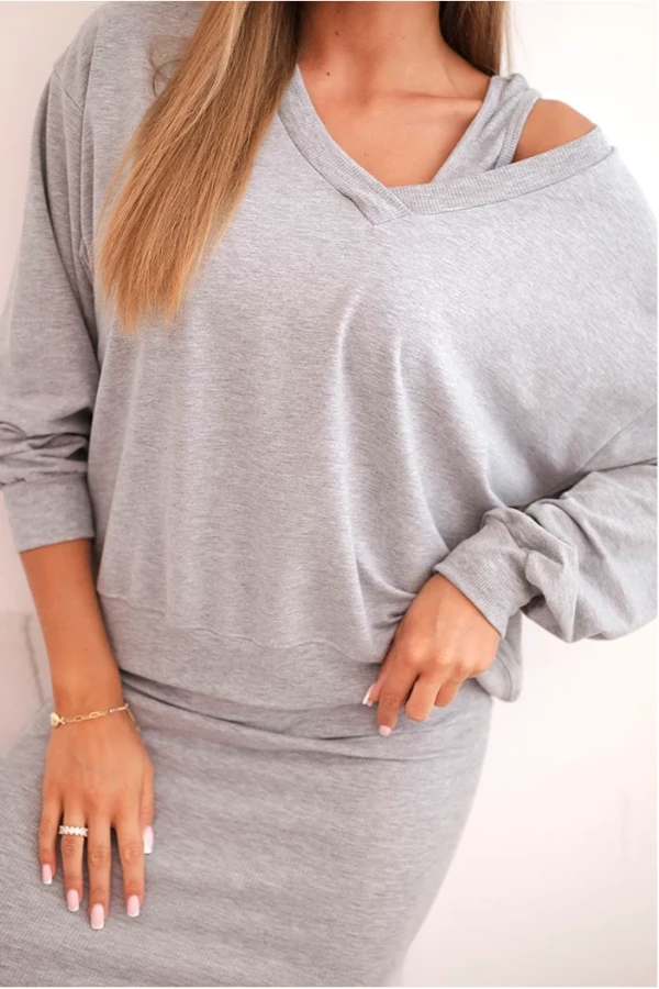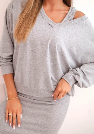 Komplet bluzka plus sukienka prążkowana Szary