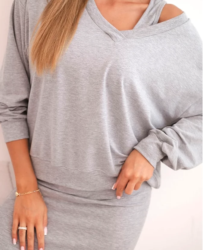 Szary komplet bluzki i prążkowanej sukienki – ponadczasowy styl i komfort