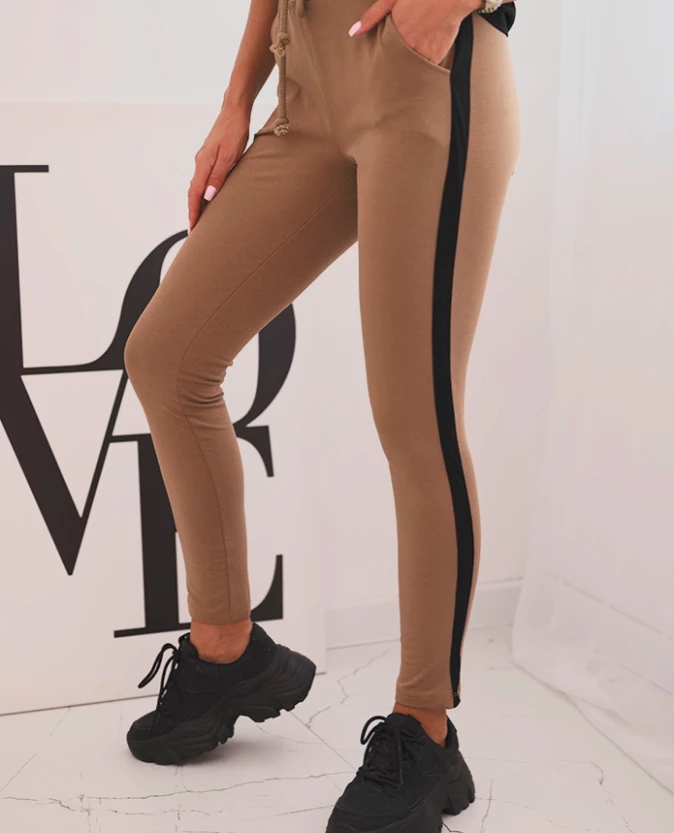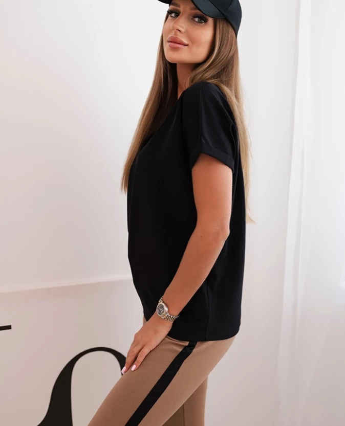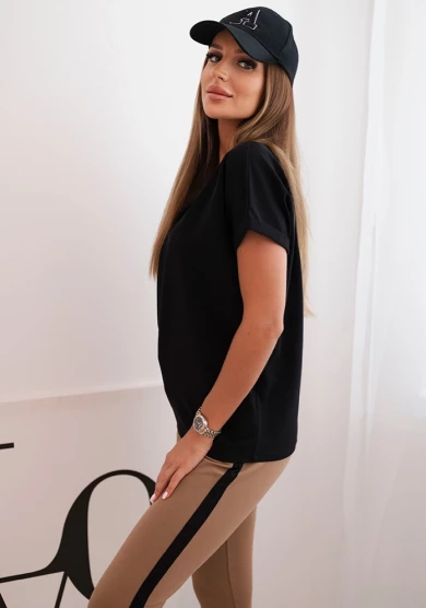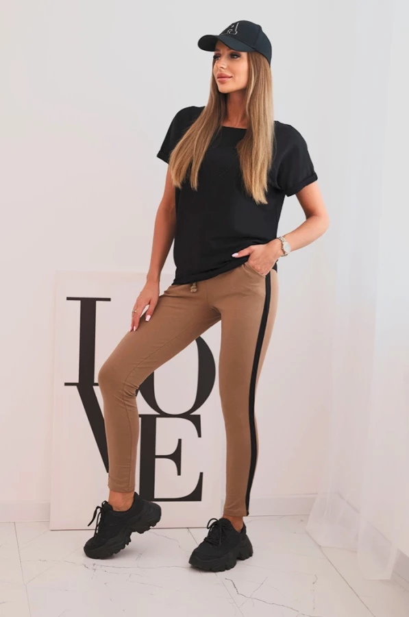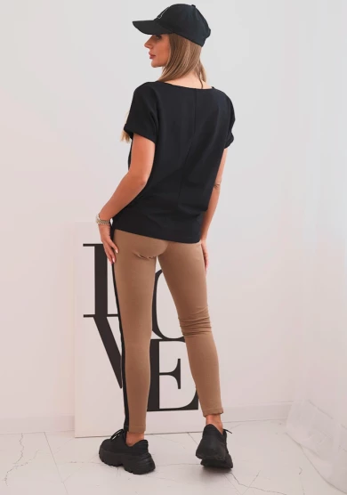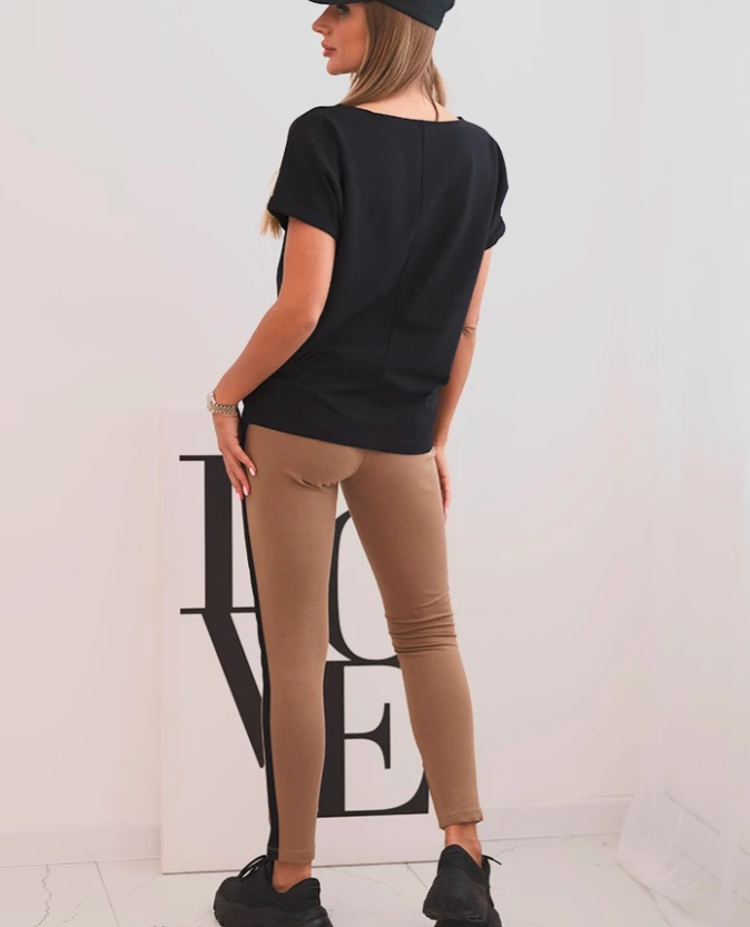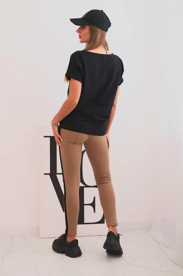 Komplet damski bawełniany z bluzką i legginsami z lampasem Czarny