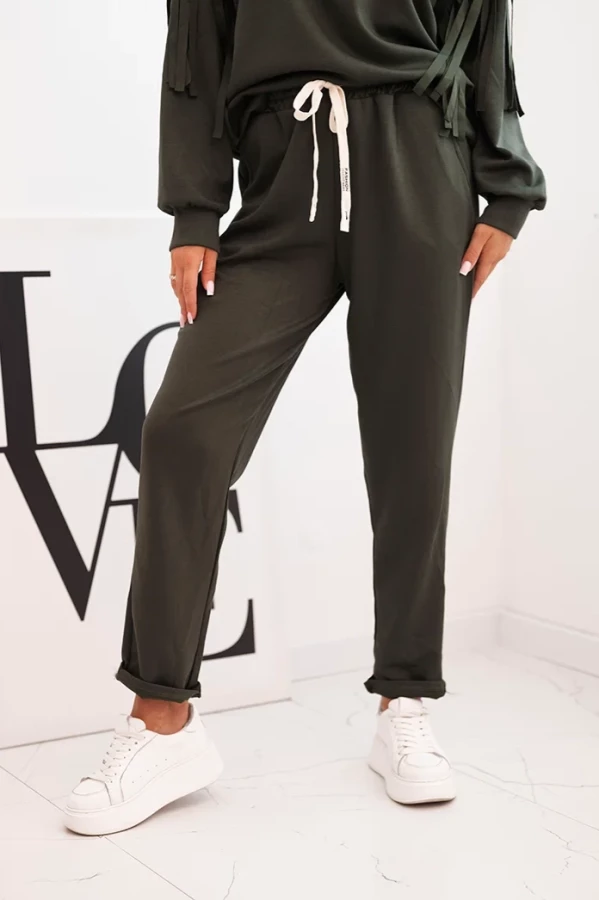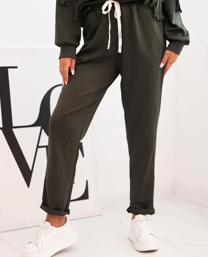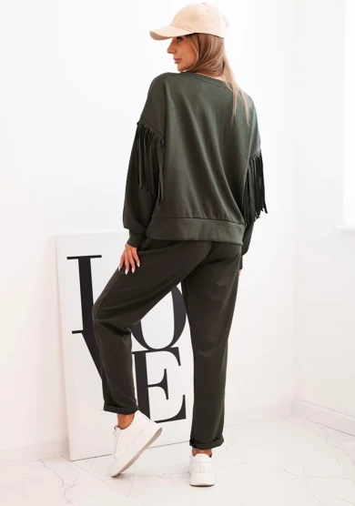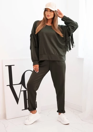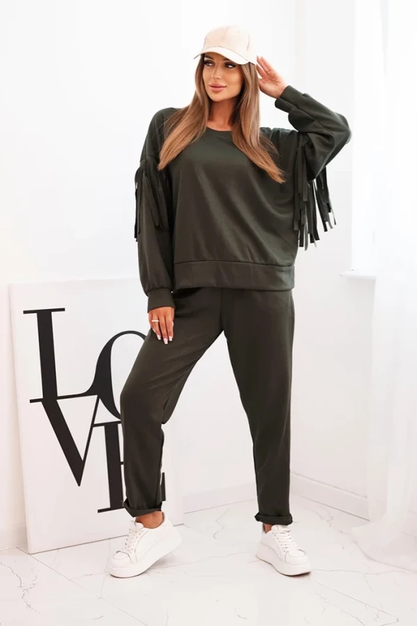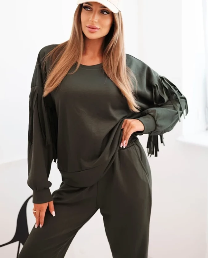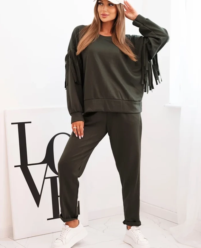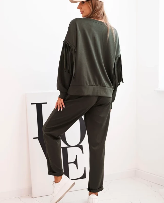 Elegancki komplet z frędzlami – Khaki